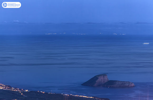 Na Serra de Santa Barbara o ponto mais alto da A Ilha Terceira, e à noite, podemos ver a Ilha de São Miguel, segundo o autor da foto, de uma ponta à outra.