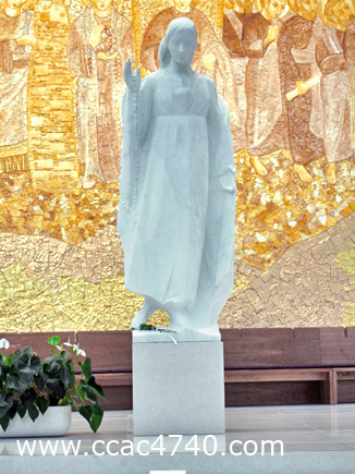 Nesta fotografia, a imagem de Nossa Senhora de Fátima que se encontra no presbitério do altar da igreja da Santíssima Trindade.