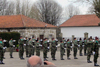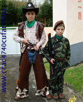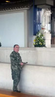 neto fardado de militar. |